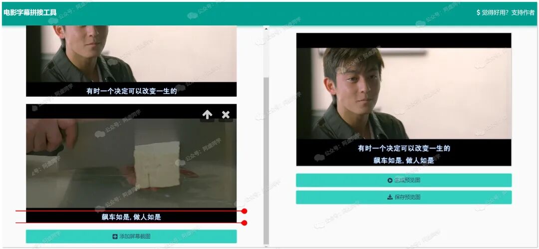 | 拼长图 | 支持 | 支持 | 软件内有广告/自动识别字幕效果很差/导出有水印 | ¥6 |