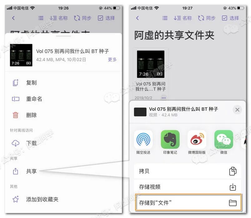 点击「共享」则可以直接发送电脑端文件到微信QQ等,或者保存到iPhone端的文件里面