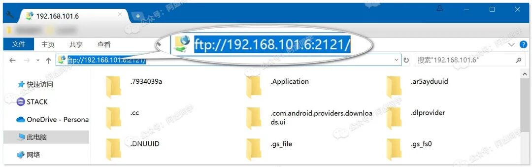 Windows电脑的话,在文件管理器地址栏输入手机端显示的ftp地址,便能轻松实现手机电脑文件互传了