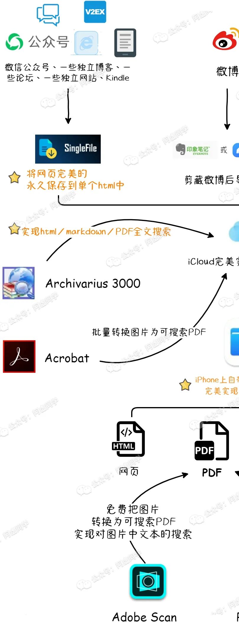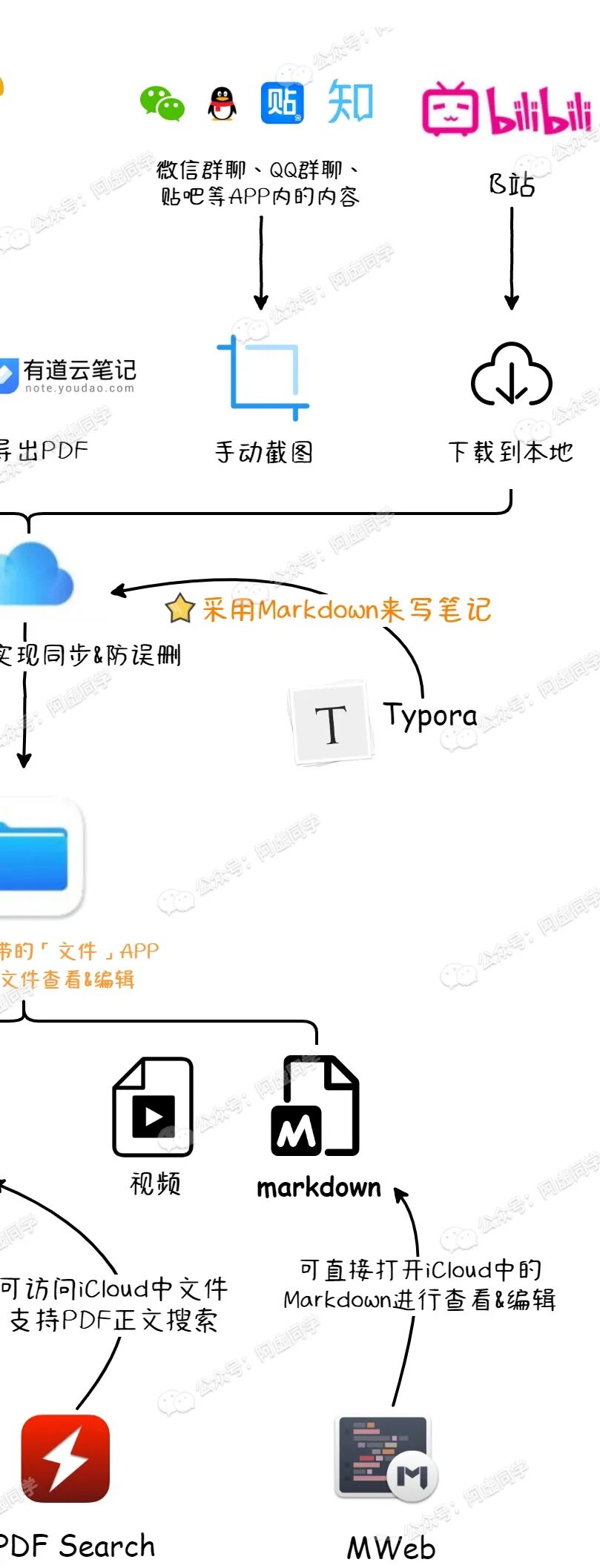 怕大家还不明白这套阿虚千辛万苦构建出来的知识管理方案,阿虚整了一张流程图