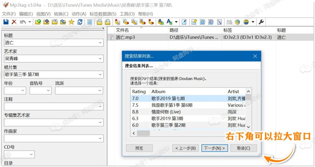 阿虚制作了一个已配置好以上数据源的 mp3tag 单文件版,想省去手动配置的话,可以在公众号上回复以下关键词获取该版本