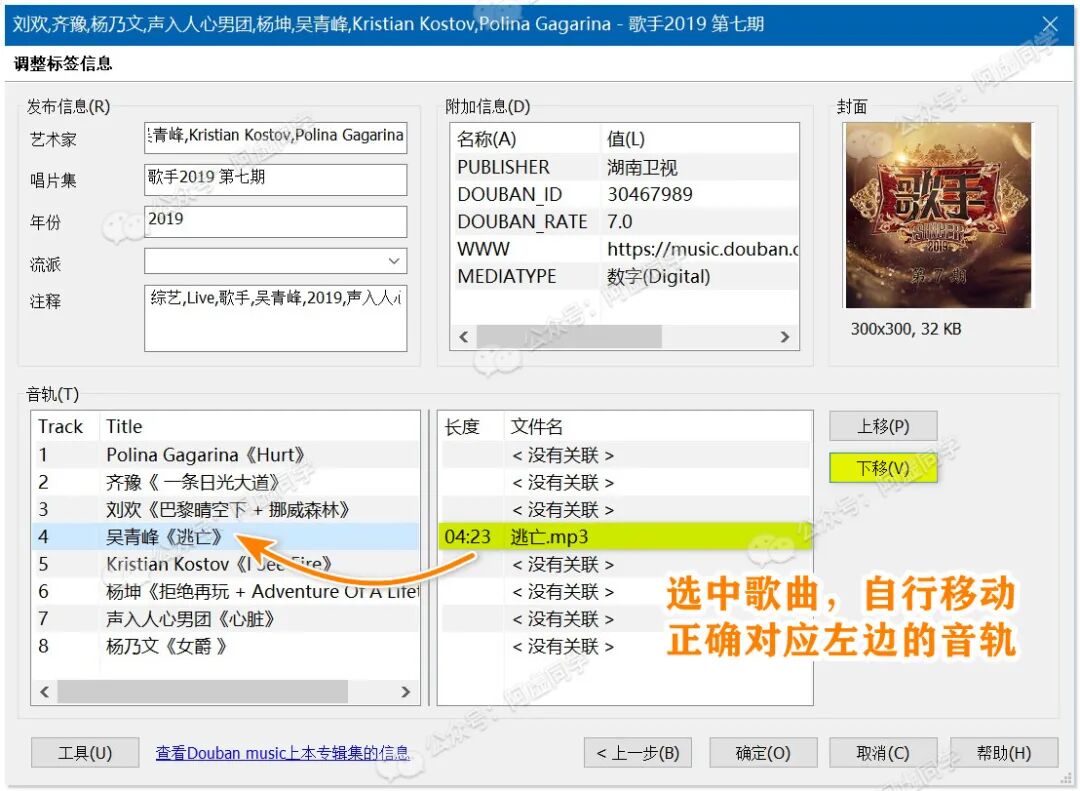 自己手动把歌曲文件,对应到正确的音轨