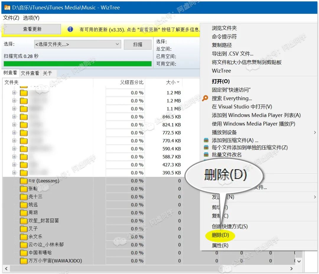 推荐的 WizTree 这款软件,分析一下你的 iTunes 资料库目录,快速删掉那些空文件夹