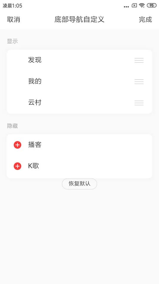 新版的网易云音乐可以在设置中关掉直播、播客、K歌等等杂七杂八的栏目了
