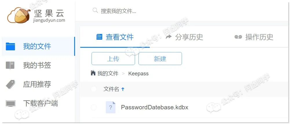把你的 .kdbx数据库文件,上传到坚果云的一个新建文件夹(文件夹名需要是英文)