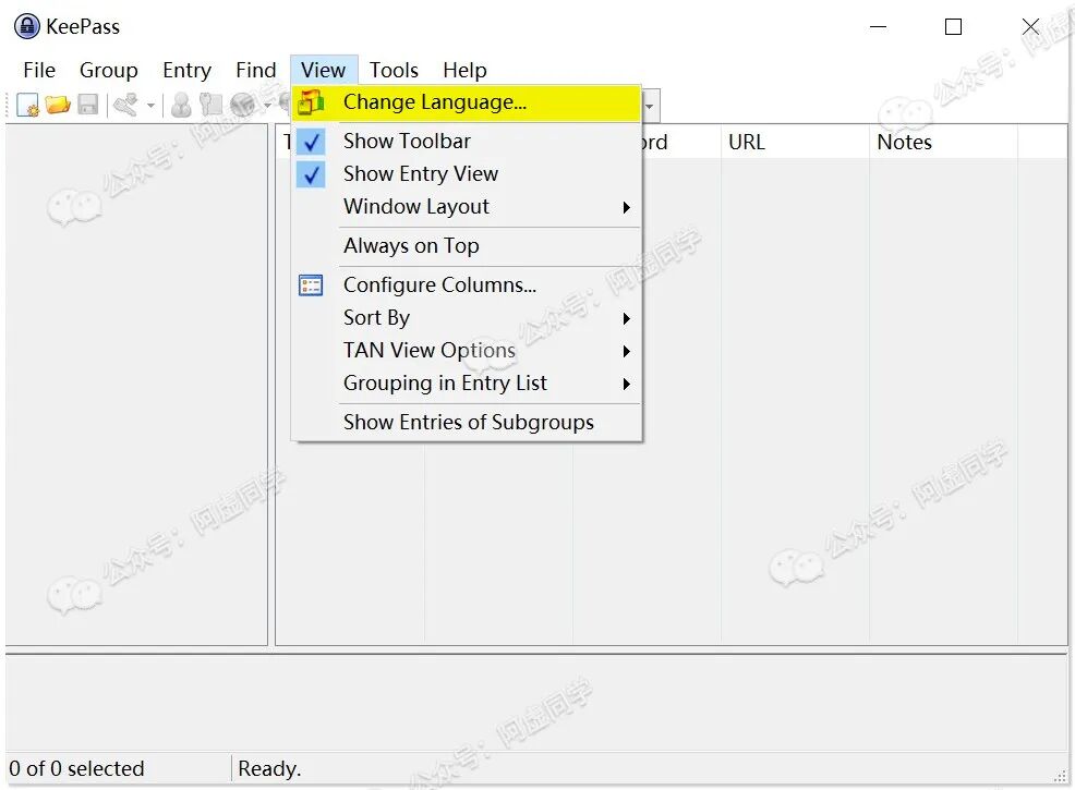 KeePass 虽然支持多语言,但并没有内置到软件中,需要自己手动下载最新的汉化包进行汉化:https://keepass.info/translations.html