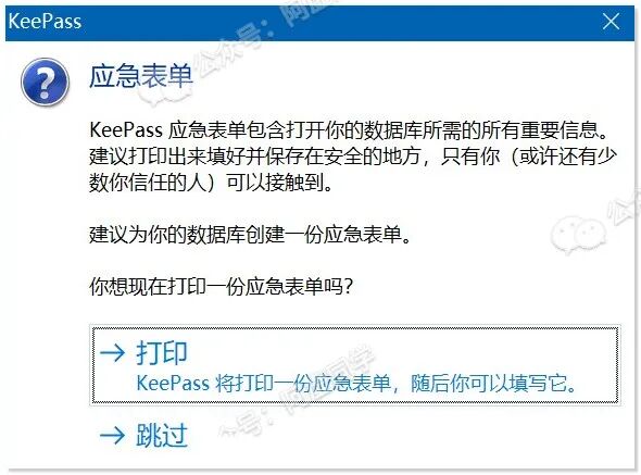 设置完之后,点击「OK」,会弹出一个打印应急表单的窗口,点击「跳过」即可