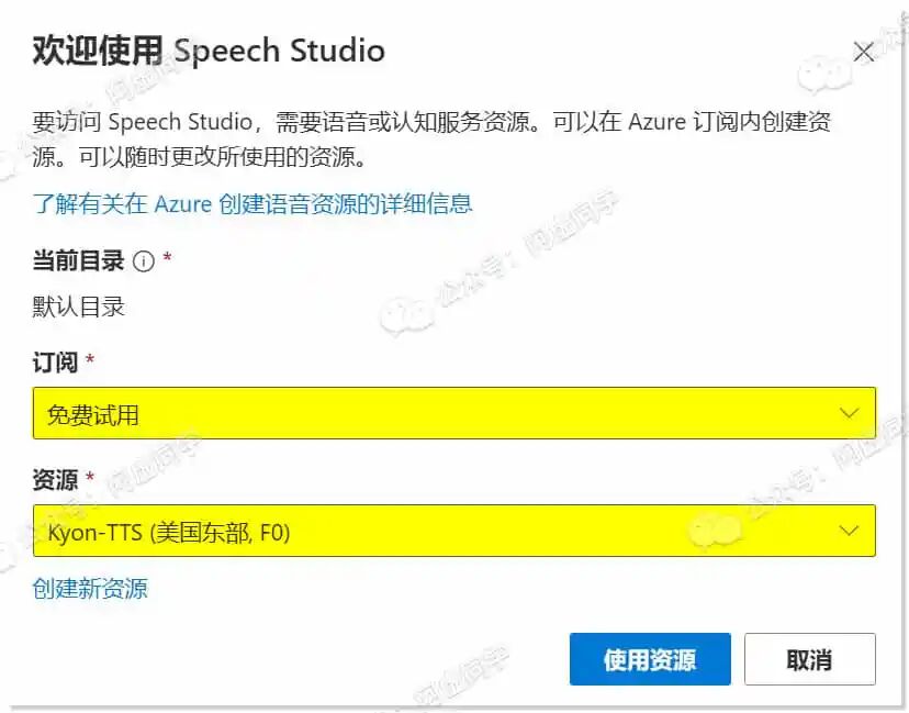 订阅选择免费试用,资源则选择刚刚创建的美国东部,免费F0资源