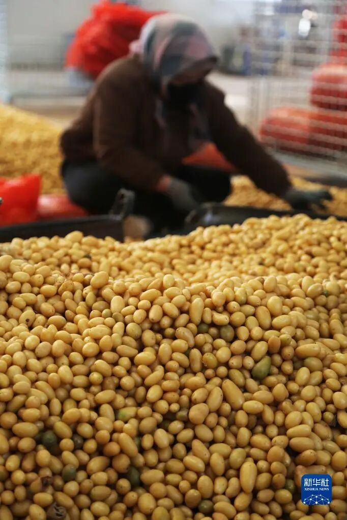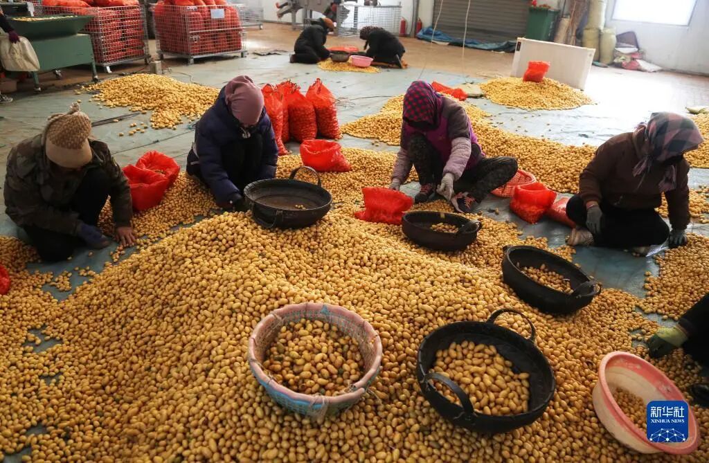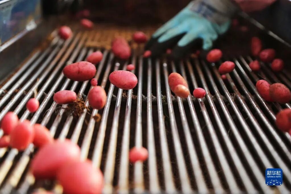 12月20日,在定西市安定区香泉镇马铃薯产业园内,工人在筛选马铃薯原原种。新华社发(王克贤 摄)