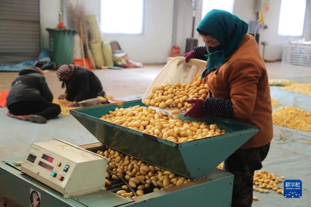 12月20日,在定西市安定区香泉镇马铃薯产业园内,工人将马铃薯原原种装袋。新华社发(王克贤 摄)