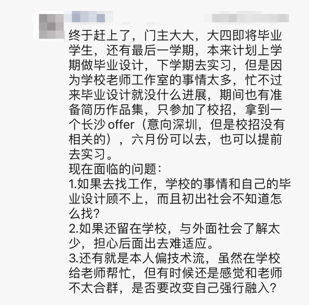 第三个问题,毕业了,老师是谁都不太重要了,自己变强才是最重要,融入老师没鸟用。