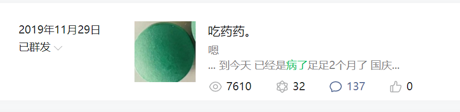 尤其是有几次真的病得比较厉害,躺床上起不来的情况下,发了个朋友圈说了我可能会断更,因为太难受了,头晕得不行。但是到了晚上还是爬起来码字发文了,我不是怕一天不发,大家以后就不看了,也不是怕被对手超越了,我只是怕我如果允许我有一天不发,我就会允许我2次,3次,无数次的给我借口,可以休息一下,一旦心理缺提,那就再也无法坚持了。
