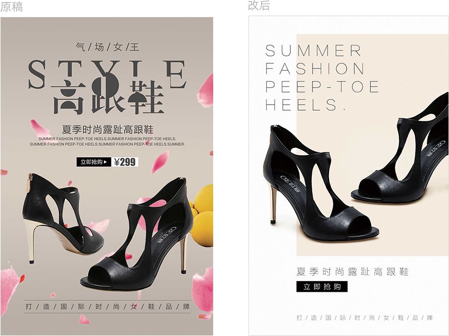 原图的设计看起来比较“套路”,对比太弱,重点不够突出。优化过后的稿子明显把这些问题都解决了,整体的层次感也丰富了很多!