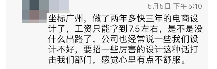 如果觉得自己做得不够好,那就努力去学习更多新技能新知识去做得更好啊。2年多7.5K在广州,不算高也不算低的了,不要自卑不要自满,不想被打击就变成他们口中那些厉害的设计师。