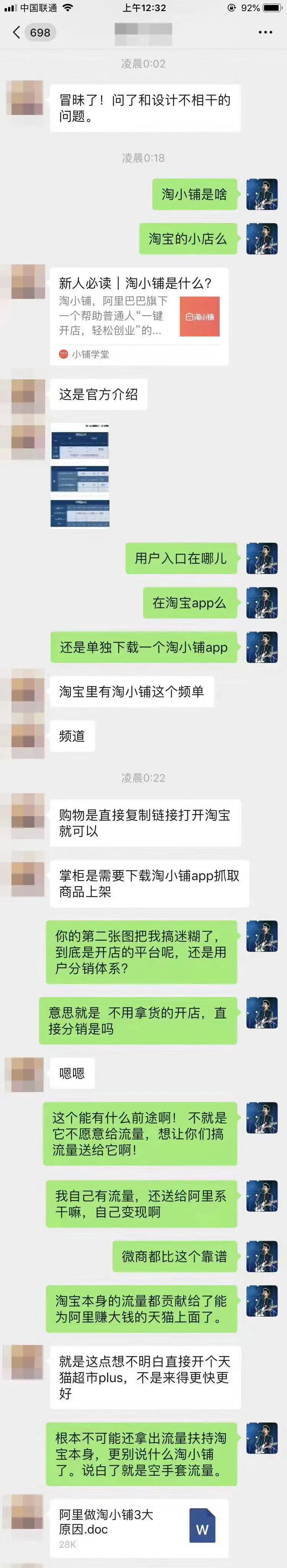放一张今年的7月2日回答另一位门友关于淘小铺的问题截图。