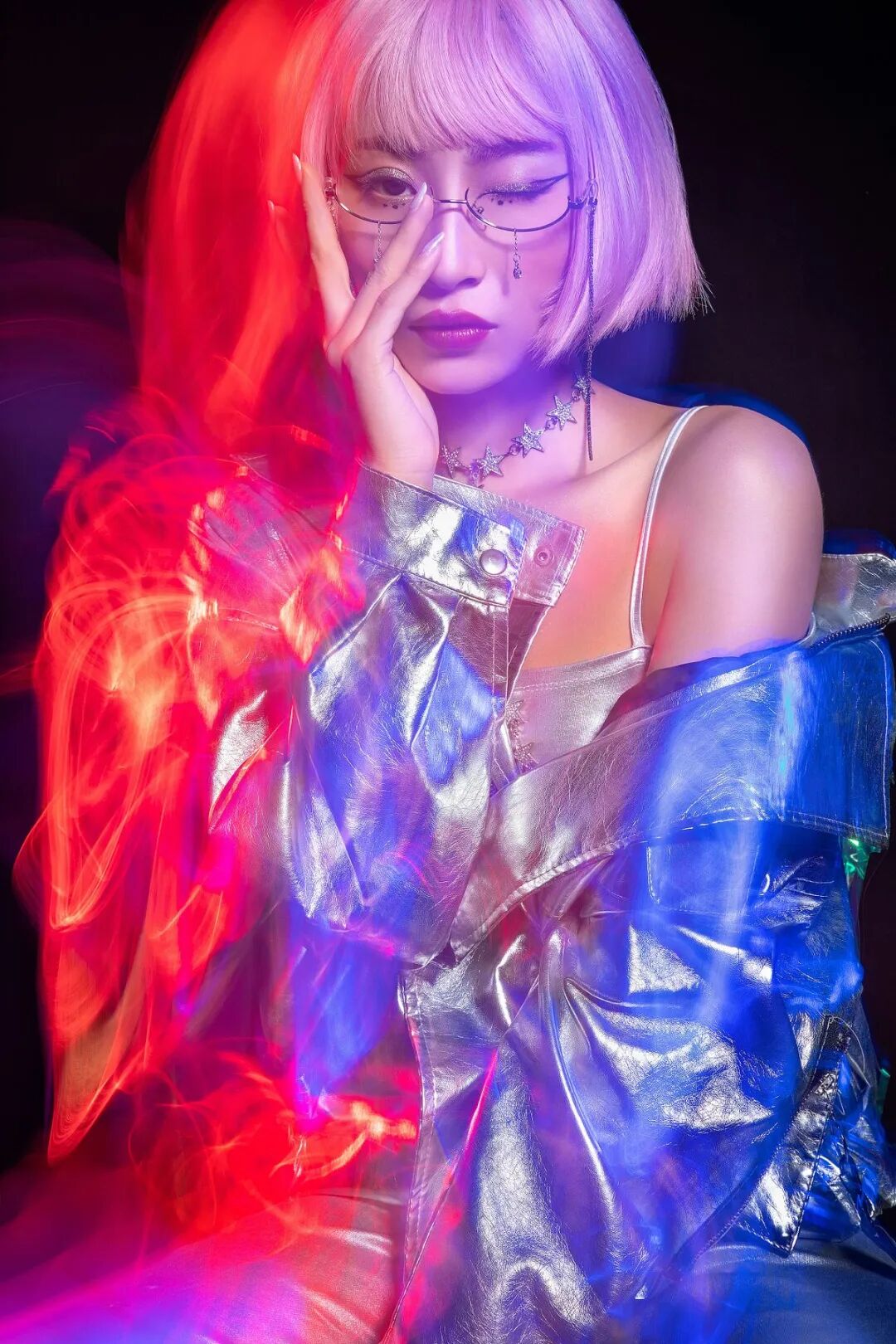 在红蓝两色灯光的强烈冲突下,人物会呈现出很强的迷幻感。