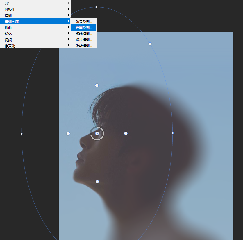 还是调出 滤镜> 模糊画廊 > 光圈模糊 ,我又要进行模糊大法了!