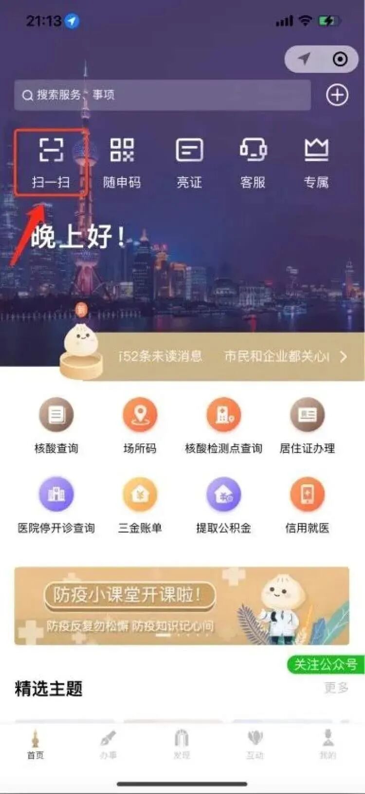 在“随申办”微信小程序上点击“扫一扫”。