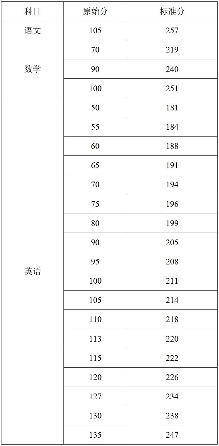 其他具体说明及《2022年海南省普通高考语文、数学、英语成绩原始分和标准分对照表》可登录省考试局网站查看。