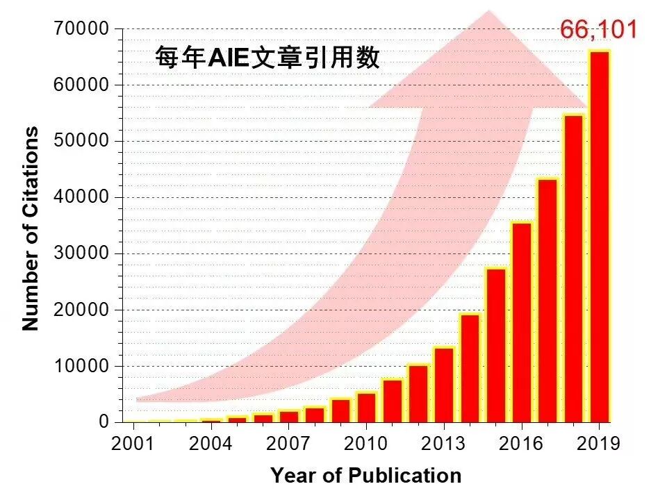 2001年8月14日,英国皇家化学会旗下化学领域著名期刊《Chemical Communications》(IF:6.12)刊登香港科技大学唐本忠教授课题组名为“Aggregation-induced emission of 1-methyl-1,2,3,4,5-pentaphenylsilole”的通讯稿,文中首次提出了聚集诱导发光(Aggregation-induced emission,AIE)的概念并研究了五苯基噻咯衍生物的光致发光性质,打破了传统思维,使越来越多的AIE分子走入科研工作者的视线中,该通讯稿的引用量已突破3300次+。目前,全球80余个国家和地区的约1600个单位的科学家正在进行AIE相关研究。AIE领域发表的论文数和引用次数均呈指数增长。开创了一个由中国科学家原创并引领、国外科学家竞相跟进的研究领域。今天我们向大家分享的这篇文章被诸多有机发光领域学者奉为聚集诱导发光现象的开山之作。但更让人侃侃而谈的,是这篇稿件背后动人的探索历程。