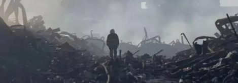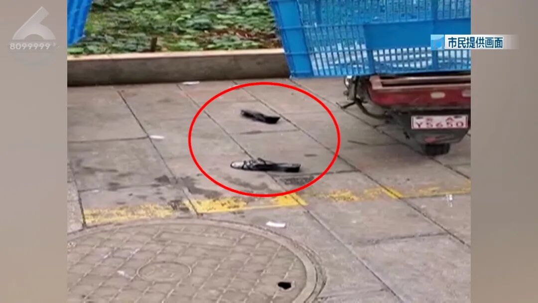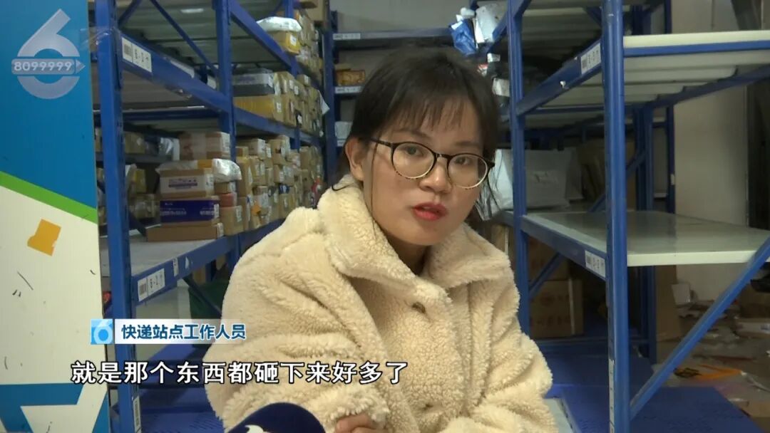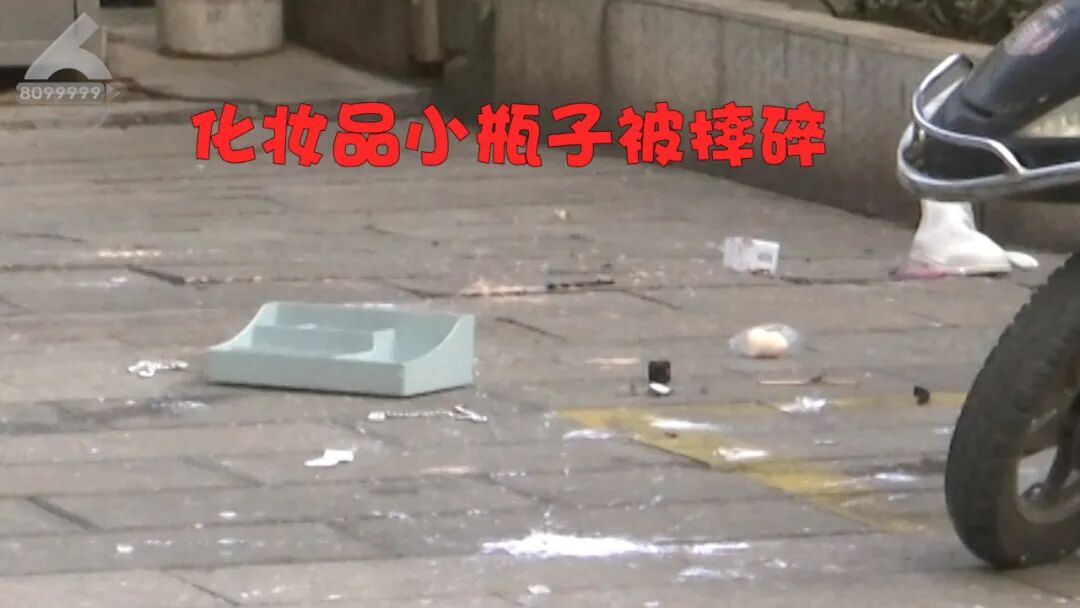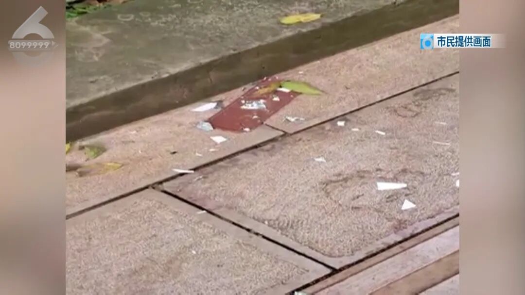 地面上全部都是掉落物品的碎片,还有一些毛绒玩具,而在七栋旁边就是小区的过道,一旁还有一个快递站点,过往的市民很多,非常的危险。