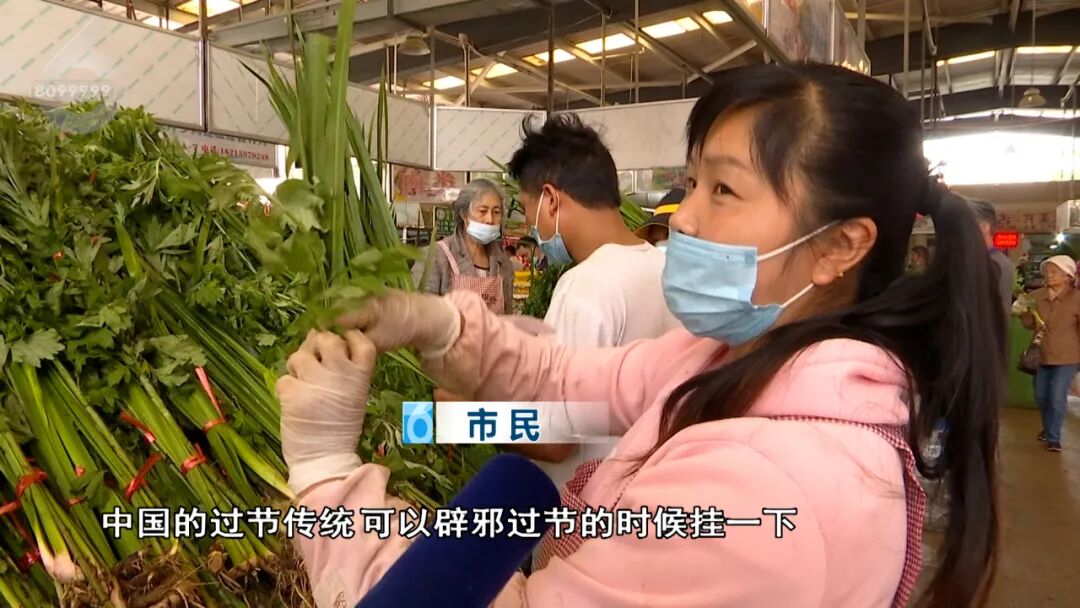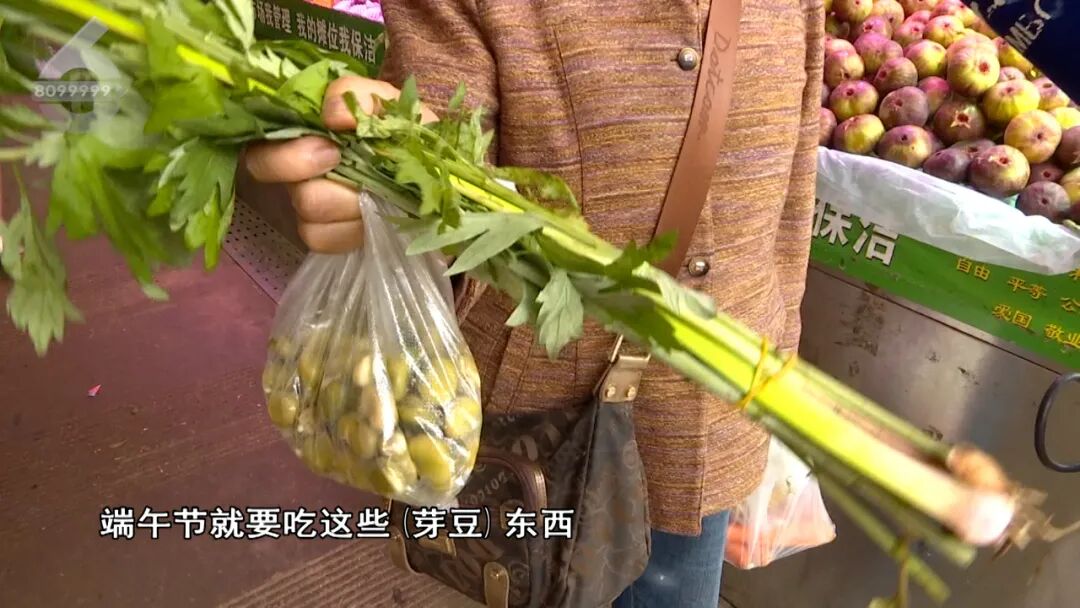市民:端午节就要吃这些(芽豆)东西,插这个(菖蒲艾草)在门上,这辈人都是这样过的,都要买这些东西这是风俗。”