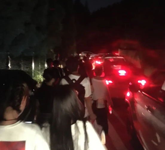 从侯先生拍摄的画面中可以看到,下山的路上除了有徒步的行人,还有排成长龙头的车辆。