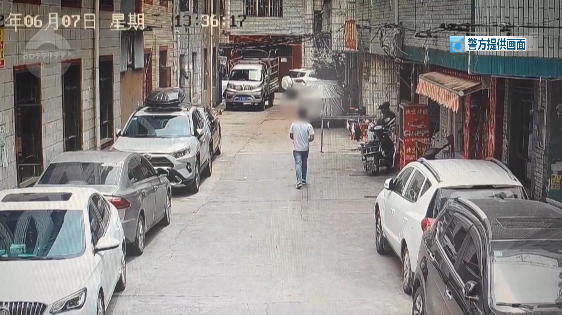 从监控视频中可以看到,一名身穿白色上衣的男子来到小板桥村内,男子一边走一边搜寻作案目标,遇到有人经过还假装过路四处观望。