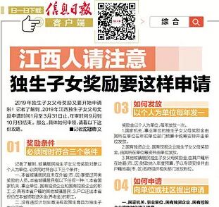 记者了解到,2019年江西独生子女父母奖励申请时间1月至3月31日止,年审时间9月到10月初结束。