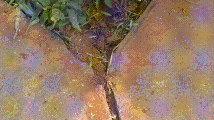 在现场,记者用竹签对着几个土质看起来有些蓬松的地方进行了试探,竹签能轻而易举的插入,几次尝试之后,更多的蚂蚁爬了出来。