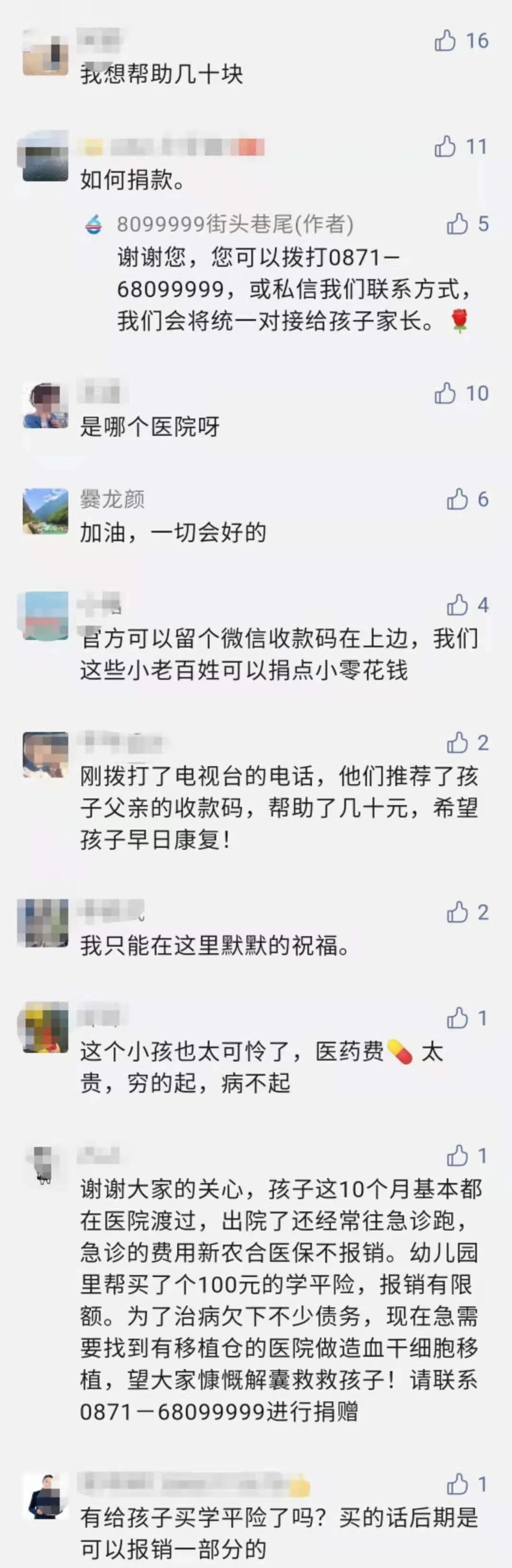 “我们在省内咨询过,他现在的病情医生建议尽快赶紧做移植,因为他的血象越来越不好,我们尽量给他筹款吧,尽量给他做移植!”