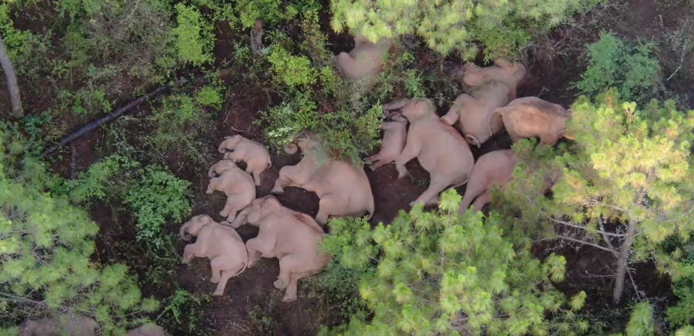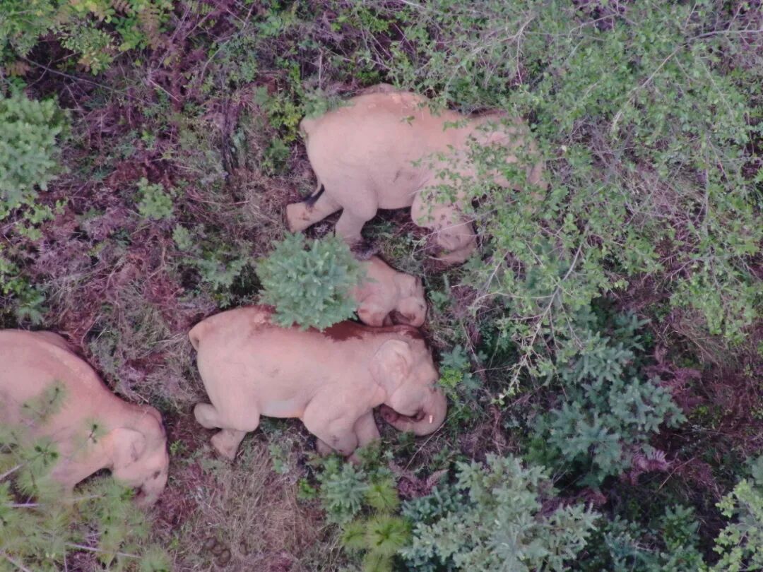 从18日夜间到22日,象群四次渡河,往返于易门、峨山境内。22日,云南省森林消防总队首次监测到象宝宝吃奶画面。