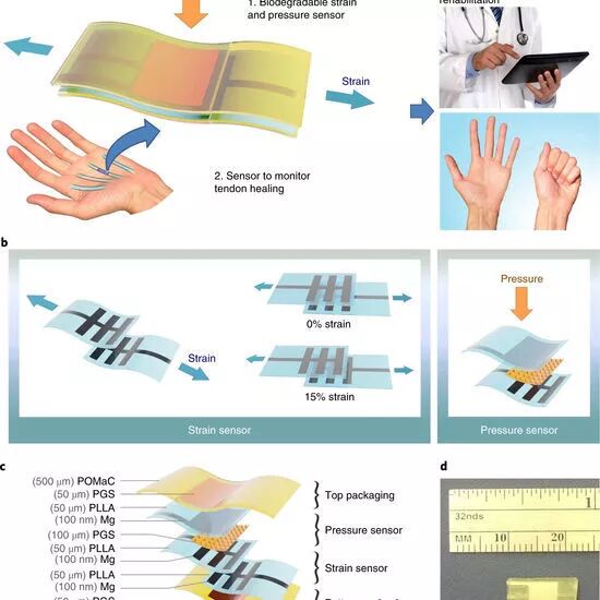 研究人员表示,他们能够控制传感器的降解,使其寿命与组织愈合所需的时长一致。此外,经过一定的设计,在降解过程中,该传感器的灵敏度也不会有明显下降。
