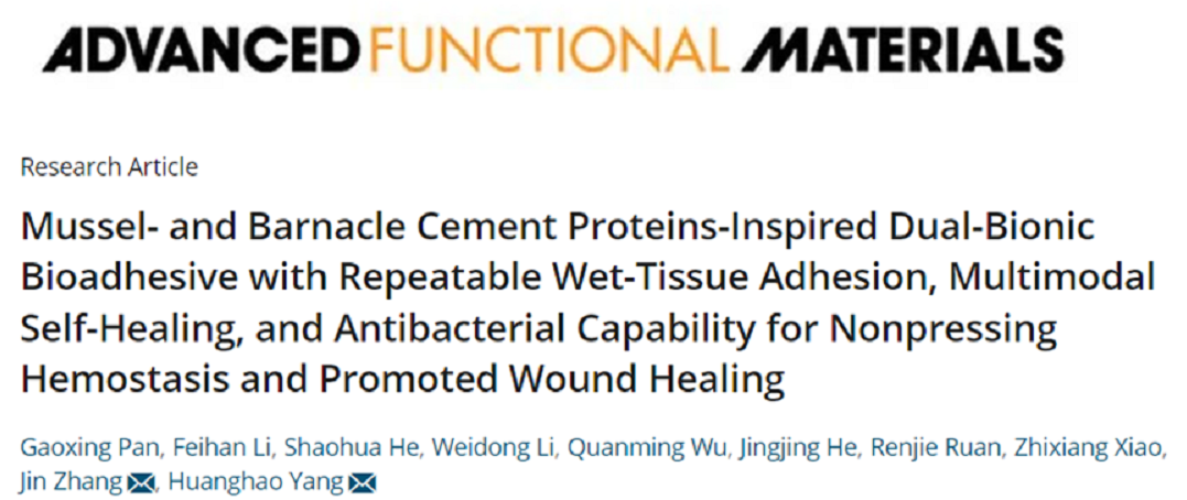福建师范大学刘海清课题组《Nat. Commun.》:兼具生物组织粘附性和适度亲疏水性的安全快速止血纱布