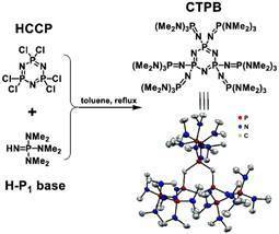 该团队的研究人员成功合成出一种新型环三磷腈碱CTPB(如图1所示)。与传统的磷腈催化剂相比,CTPB的合成方法简单,成本低廉,可大批量制备。