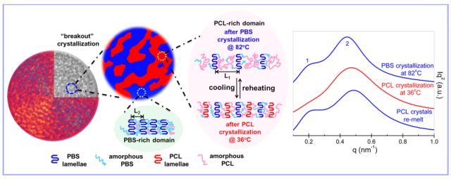 图2 在两步恒温结晶和重新熔融过程中,PBS-co-PCL多嵌段共聚物的微观结构演化机理(Macromolecules, 2018, 51, 1100-1109)