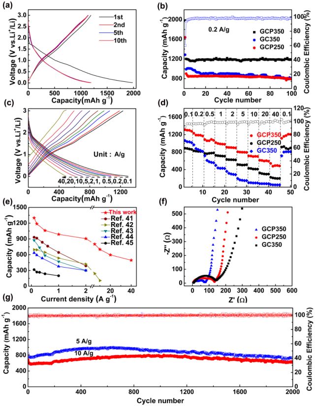 图3. 作为锂离子电池负极的电化学性能