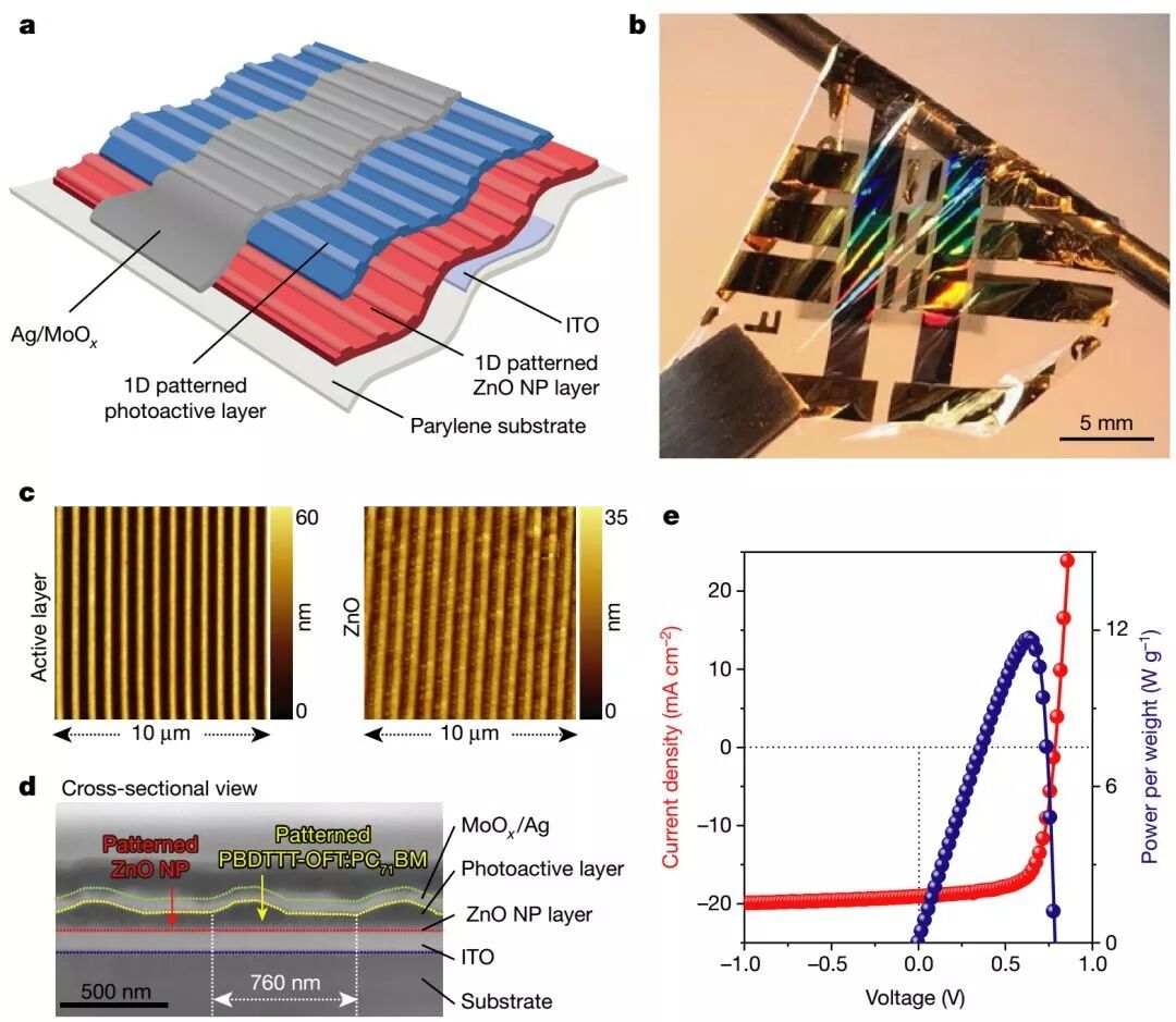 在OPV制造工艺中,引入纳米图案化的ZnO结构,解决了柔性电子器件的两个老大难问题: