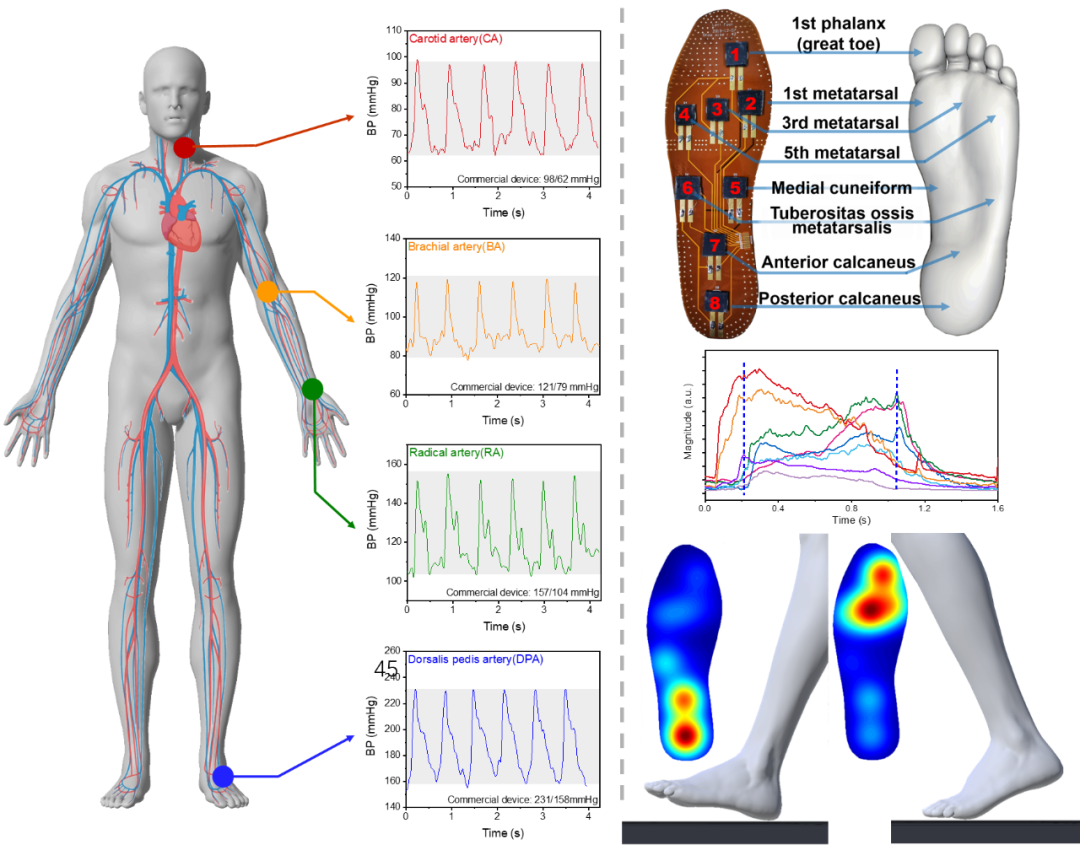 石墨烯压力传感器实现人体多部位血压测量以及步态监测系统