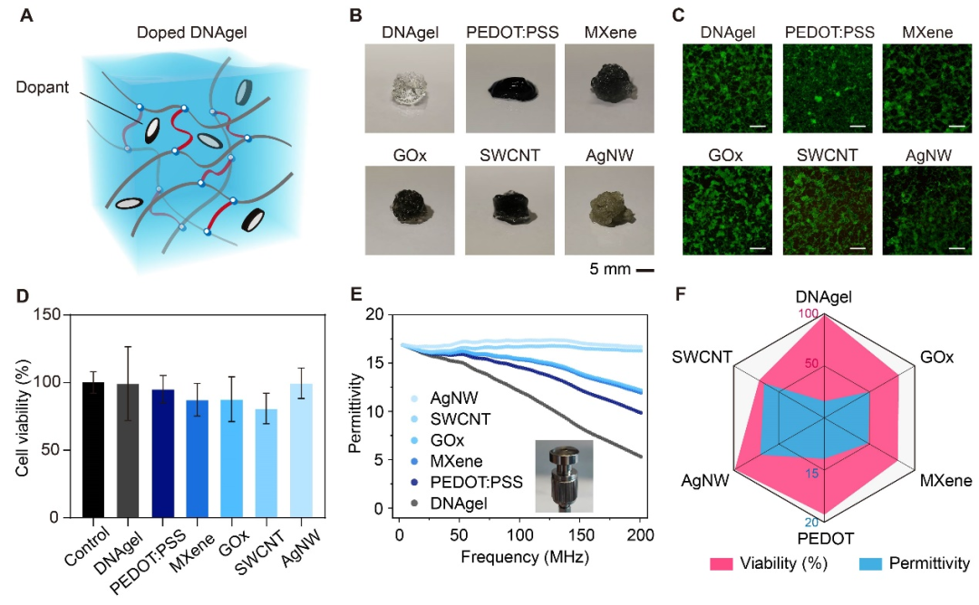 图4 DNA水凝胶的介电常数和生物兼容性。