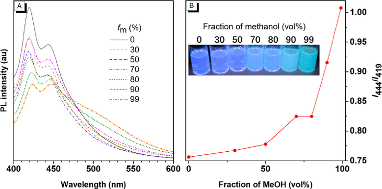 图4. 聚合P1c2a在不同比例的THF/MeOH的溶液中的荧光发射谱图综上,该工作开辟了以亲核炔化物作为单体新型聚合路线,丰富了炔类单体参与的聚合反应类型,为新型聚合物材料的制备提供了新的手段。相关结果以”Alkali-Promoted Tandem Polymerization of Nucleophilic Acetylide Monomers and Aldehydes toward Luminescent Polymeric Materials”为题发表在Macromolecules上,论文第一作者为华南理工大学的博士生叶灿彬,通讯作者为华南理工大学秦安军教授。