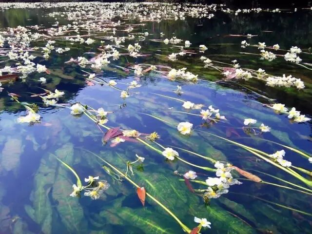 虽然这些传说无从考证,但是百寿古镇的水质好却是名副其实的,一种神奇的植物就是最好的证明。海菜花最大的特点就是对环境非常挑剔,海菜花花瓣不大,洁白如雪,花心呈淡黄色,整个看起来小巧精致。远远望去,一朵朵小花散落在平静的水面上,仿佛满天星。这是一种珍贵的沉水植物,喜爱洁净,水体要求清晰透明,无任何污染,才能生长。这种“富贵花”,由于生长条件苛刻,对水质污染很敏感,所以人们往往把是否生长海菜花来判别水质是否受到污染。