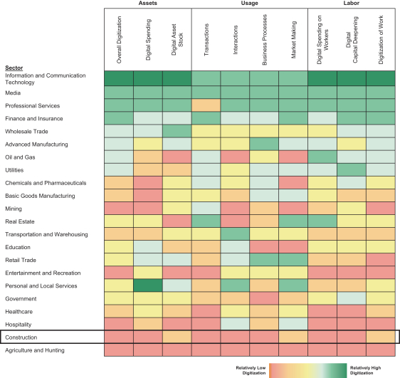 从根本上说,在工业软件/工业互联网这张大产业地图上,发展的终局可能是殊途同归,只是不同企业在不同时间节点/Timing选择了不同的发展路线。原因无他,真相在于这种选择可能会直接影响企业的成长速度、融资进度乃至生死存亡。这三条路线,没有好坏之分,对企业来说只有合适不合适的区别。从观点上看,仰攻者一派认为,决定软件先进性及生命力的主要因素是软件基础技术,而并非特定的应用技术,比如“从CAD 软件30年的发展历史来看,带来工业软件商业化能力跃迁的,不是细分应用的拓展,而是 从2D到3D,从造型到仿真这种技术革命带来的进步”。但在其他两派看来,在基础软件和软硬一体化产品方面,我国整体发展水平与其他工业化大国存在较大差距,像Autodesk、Adobe以及西门子、艾默生等公司在技术产品上的完善度已经非常高。单点突破弯道超车难度大、收益小。只是在一致的基本判断之下,深耕者和跃进者选择了不同的突破口。跃进者直接瞄准了工业互联网这一更新式的产品业务形态,他们认为工业软件和5G、云计算等新技术的融合,对产业链变革和制造业整体技术水平提升的意义更为重大。当前,云计算、物联网、5G等底层技术日趋成熟,因此我国工业软件可以遵循和国外工业软件不同的发展路径,着眼用新技术解决产业链研发、制造协同的效率问题,挖掘工业软件增量价值。而深耕者虽然在技术上也有迭代升级,但更强调对特定行业的专注。相对于技术本身,更强调行业Know-how的掌握。简单的说,两者的区别在于一个要高举高打,一个要伏低深挖。本文的重点在于剖析深耕者们的竞技场。2020年年中,国际三大油服巨头之一的哈利伯顿(Halliburton)宣布了与微软的一大合作,表示将其物理数据中心迁移到微软的云计算平台上。按照该公司的设想,后续将通过实时运营中心完成远程设计和监视作业,来自钻机的作业数据将被传输到云中,以供工程师进行远程下载和分析。业内认为,油田行业的数字化将为微软等数字化供应商带来了巨大的机遇。据估计,该行业整个潜在市场每年高达500亿美元。今年早些时候,在巴克莱的一份研究报告中,云计算服务商Buurst表示,石油行业代表着巨大的云计算机会,因为它们存储的数据堪称海量。与大多数其他行业相比,石油和天然气公司数字架构消耗的地理空间数据量几乎是医疗行业和电子商务公司的100倍。油田行业企业大多财大气粗,但他们也需要思考如何在新兴的数字环境中独树一帜,而数字化可能代表着强大的长期增长机会。据IEA预测,数字技术的大规模应用,能够让油气生产成本减少10%~20%,让全球油气技术可采储量提高5%。如今,油服行业的三大巨头(斯伦贝谢、哈里伯顿和贝克休斯)的数字化转型已经持续近二十年。BP公司在两年前收购了爱尔兰物联网专业公司Ubiworx,由此Ubiworx公司的机器学习和人工智能将与BP可再生能源和储能领域的技术整合在一起。一年前,埃克森美孚公司也与微软建立了合作伙伴关系,通过后者的“数据湖”平台改善其上游生产活动,并计划每年投入约10亿美元用于机器学习的研究。埃克森美孚还通过一个可监控数百万个传感器数据的人工智能程序管控着旗下分散在全球各地的炼厂和化工厂,旨在监测石油流量等重要数据和信息。在中国,像中石油、中石化等大型央企也都在开始与华为等IT公司合作。比如华为公司就为中石油规划建设了认知计算AI平台,试图将过去勘探和生产领域的沉默数据、无用数据发掘出更大价值。像中智软创这类新创公司的MES、RTO(流程优化)等产品方案也开始国内各大油企炼厂中得到应用。其中,仅仅RTO领域的市场规模就能达到近千亿元人民币,留给相关企业的成长空间可谓巨大。与石油行业相比,建筑行业虽然在全球整个社会经济中举足轻重(体量上占全球GDP的约13%,在我国占GDP的25%),但仍被认为是全球数字化程度最低的行业。根据麦肯锡的《行业数字化指数》,在所有主要行业中,建筑业在数字化方面排名倒数第二,仅次于农业和狩猎业。麦肯锡估计,在过去的二十年中,建筑行业的劳动生产率平均每年增长约1.0%,而全球经济的年平均增长率为2.8%!另外,麦肯锡的数据显示,全球年度建筑支出(包括新建筑以及正在进行的维护和改造),预计将从2017年的约10万亿美金增加到2025年的约14万亿美金(2019 年我国建筑行业总产值达到 24.84 万亿元)。2017年时,联合国曾估计,在未来40年中,为了满足人口增长和城市化的期望,全球差不多每个月建造的城市建筑体量大小相当于一个纽约市。根据德勤报告,建筑业在IT上的花费是全球所有行业平均水平的一半。在国内,最近这些年,随着建筑业产值增速放缓,对行业的精细化管理提出更高的要求。根据行业信息数据,2018 年,中国建筑信息化投入占总产值的比例仅为0.10%(同期发达国家是1%,国际平均水平是0.3%)。可见,国内的建筑信息化仍存在巨大的发展空间。2020 年7月和8月,住房和城乡建设部等部门先后发布了《关于推动智能建造与建筑工业化协同发展的指导意见》、《关于加快新型建筑工业化发展的若干意见》两个文件,其中提到:鼓励搭建建筑产业互联网平台;以数字化、智能化升级为动力,形成涵盖科研、设计、生产加工、施工装配、运营等全产业链融合一体的智能建造产业体系。汇森资本行研组在今年走访上海一家最大的水利工程建