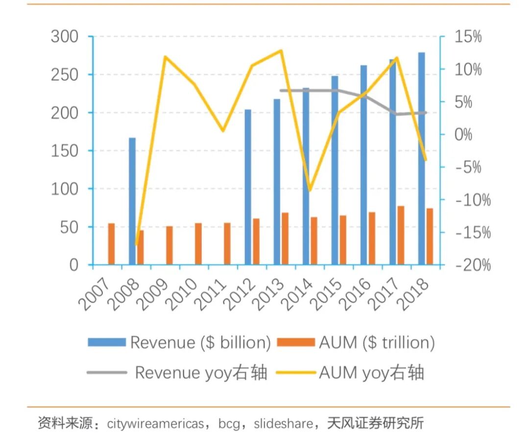 全球资管收入及AUM增长平稳