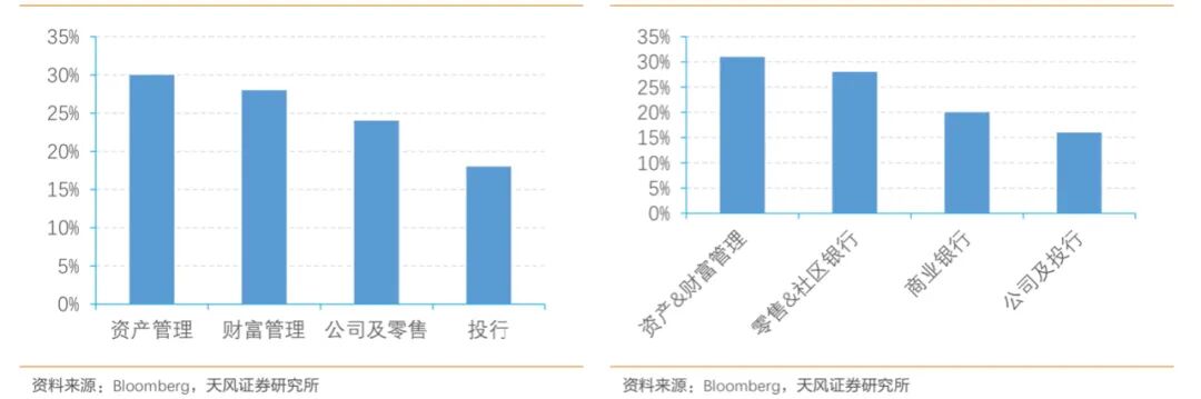 首先,在全球范围内,资管业务的体量和ROE对主流海外银行的运营业绩很关键。