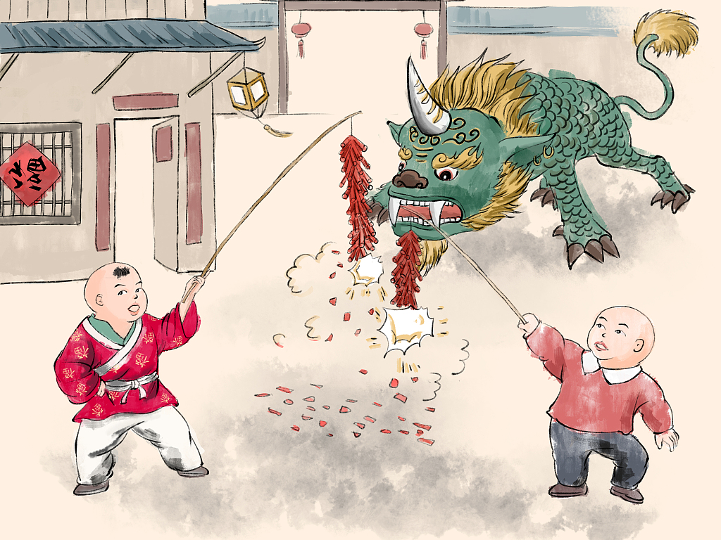 一夜连双岁,五更分二天。寒辞去冬雪,暖带入春风。在传说中,每到除夕年兽都会出来为害,人们经过一夜的守岁和燃放鞭炮,吓跑年兽。除夕夜,人们都要除旧迎新,有”旧岁至此而除,来年另换新岁“的含义,这也是最重要的年俗。