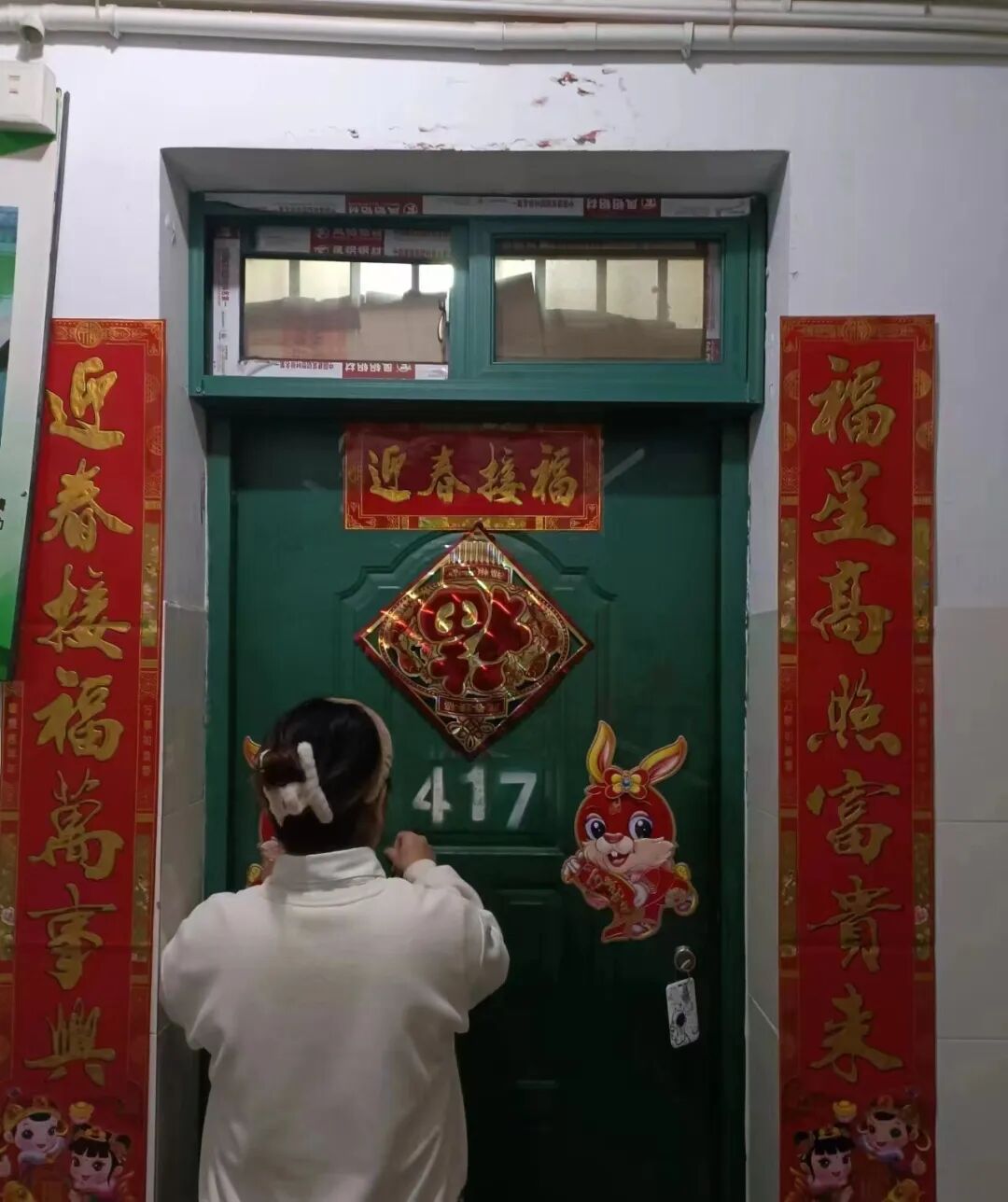 贴上对联迎春接福