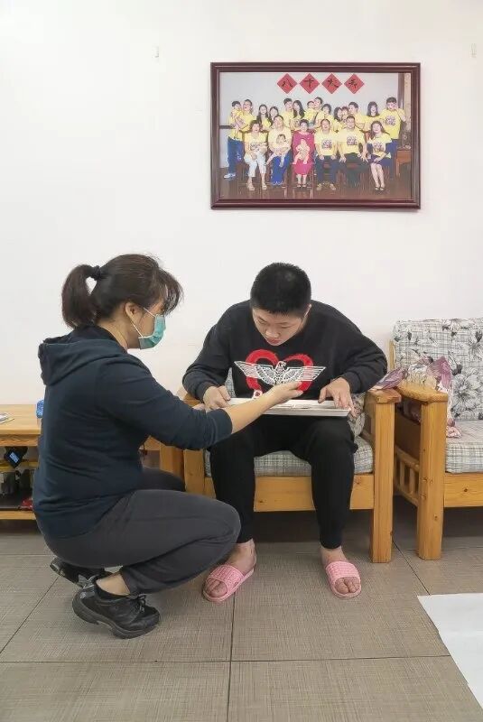 这是凯文妈妈陪伴凯文完成一次支持性自主决策的过程,凯文通过图片的方式,表达了自己的愿望。前来探访的市残联侯伊莎理事长也参与、见证了这一过程。