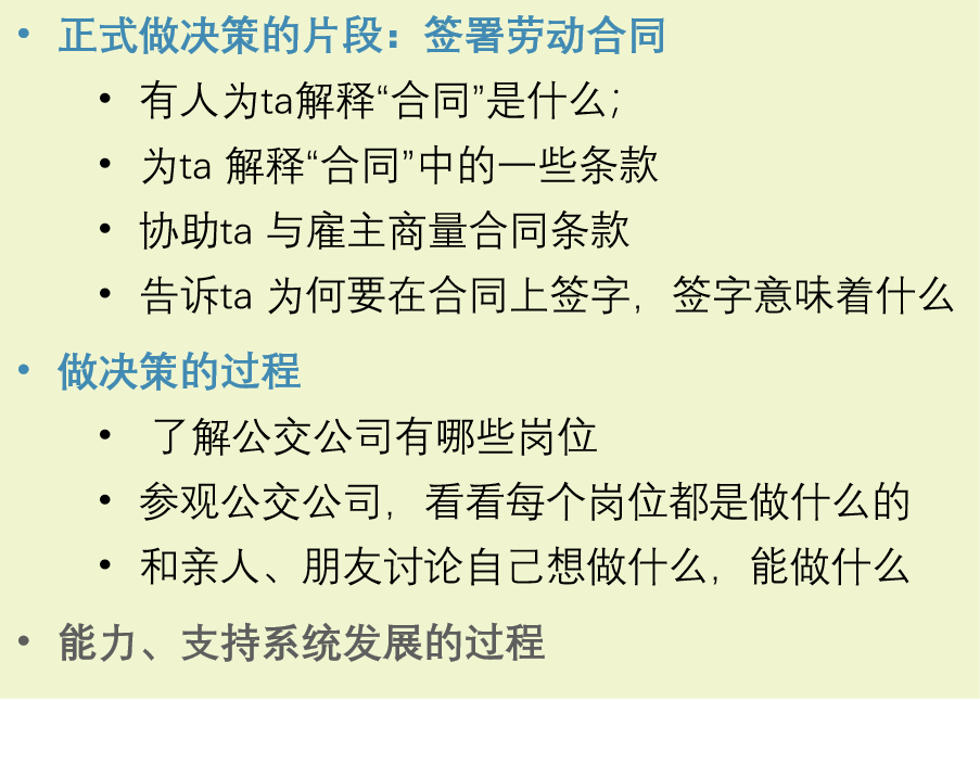 → 在作出具有法律意义、效力的决策时有获得的协助与支持的条件