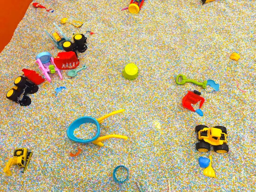 On the right side of the place, you’ll find a “sand pit” that’s not filled with actual sand. The material in question is more like plastic Nerds candies, but there’s a slide in there and plenty of toys that the kids seem to enjoy. Finally, the coolest part, especially for older kids, is the ninja warrior-looking foam pit obstacle course!